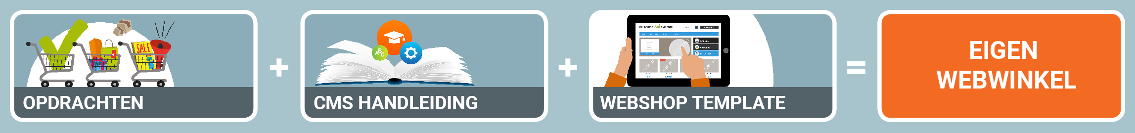 • De Schoolwebwinkel is één totaalpakket dat bestaat uit praktijkopdrachten, CMS opdrachten en de eigen live-webshop.